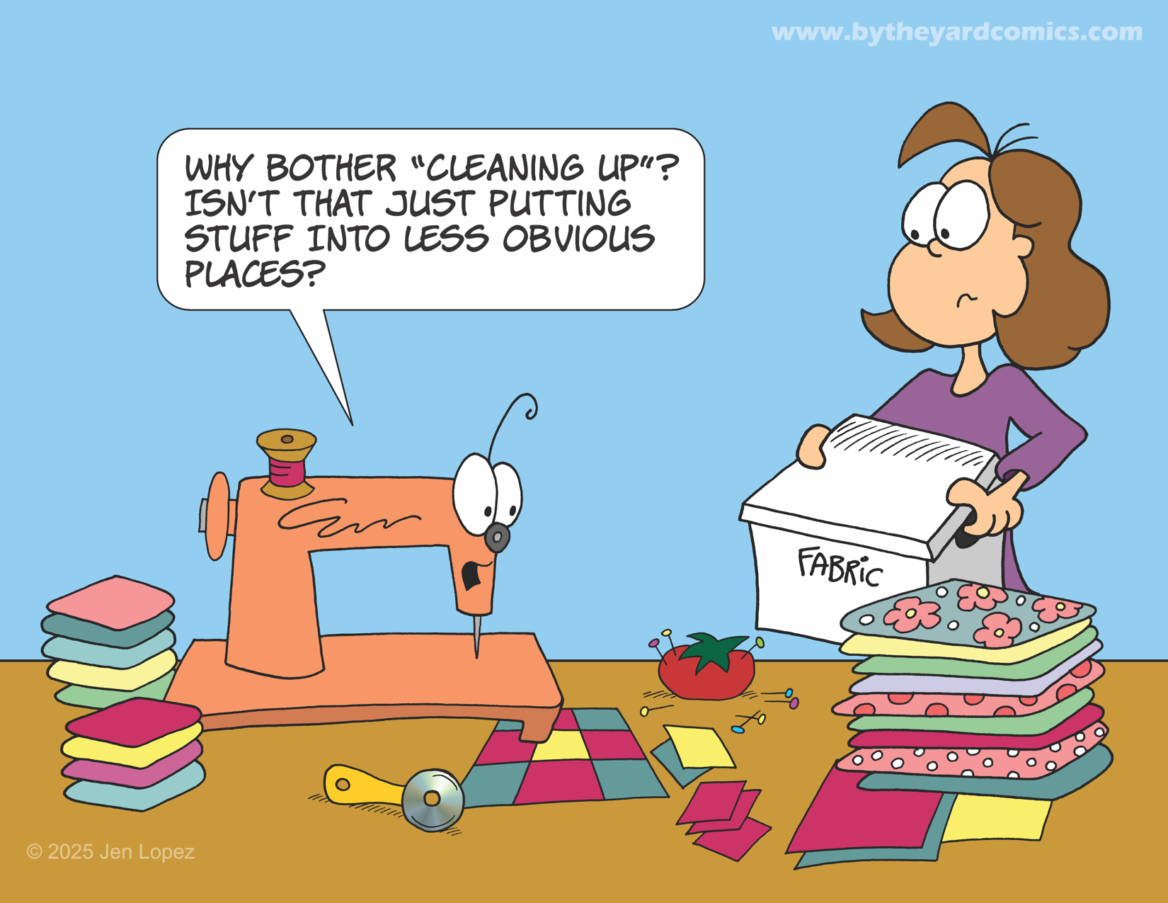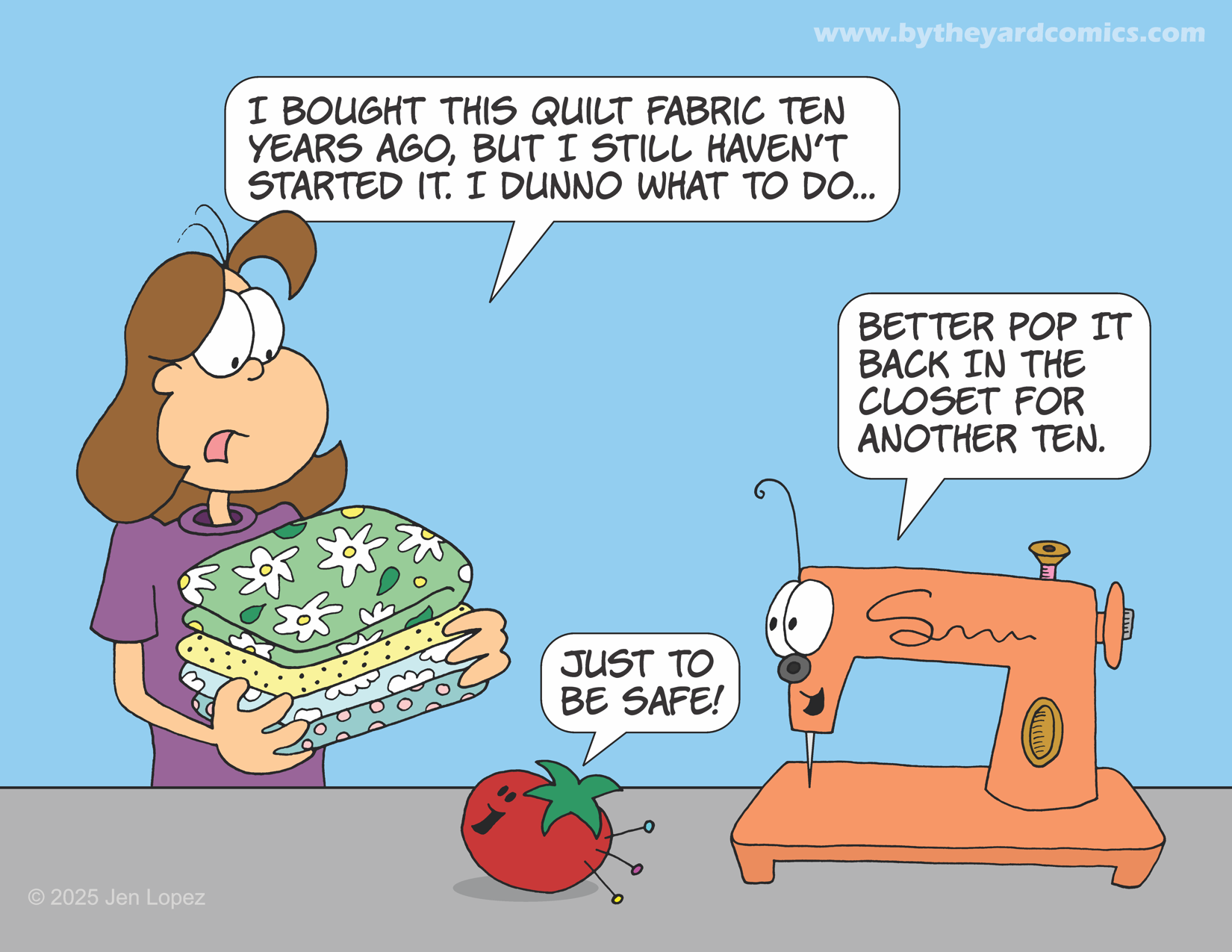 Aside from some obvious situations such as running out of a necessary fabric color or type and waiting to find a suitable replacement, there is a good reason to set a project aside in favor of another. You need to have a project which matches your energy and creativity levels at the time. Have a lot going on with the kids’ fall sports or holiday planning? Now would not be the time for the Double Wedding Ring quilt you have planned for your nephew and his future bride. Maybe a big block project with a “don’t-want-to-cut-it” large print might be the ticket for you right now. Is work so slow these days that you are bored out of your skull? I think now might be the time to tackle the tessellating queen size pattern that you’ve been doodling in the margins of your notebook for weeks. Whatever is going on in your life, it’s important to have multiple projects going on at any given time so that you can find the right fit for your current circumstance.